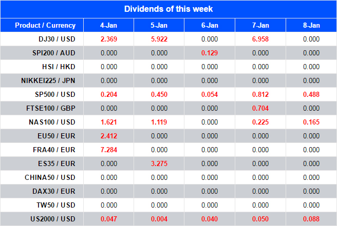 Warmly reminds you that the component stocks in the stock index spot generate dividends. When dividends are distributed, VT Markets will make dividends and deductions for the clients who hold the trading products after the close of the day before the ex-dividend date.