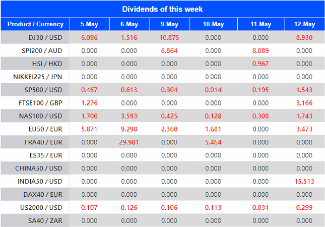 Warmly reminds you that the component stocks in the stock index spot generate dividends. When dividends are distributed, VT Markets will make dividends and deductions for the clients who hold the trading products after the close of the day before the ex-dividend date.