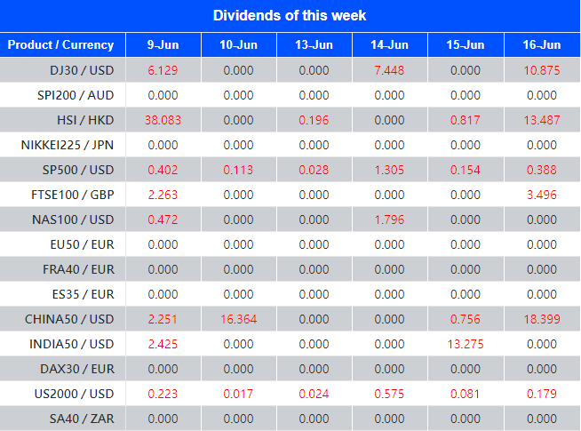Warmly reminds you that the component stocks in the stock index spot generate dividends. When dividends are distributed, VT Markets will make dividends and deductions for the clients who hold the trading products after the close of the day before the ex-dividend date.
