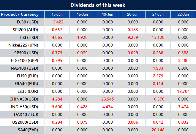 Please note that the dividends of the following products will be adjusted accordingly. Index dividends will be executed separately through a balance statement directly to your trading account, and the comment will be in the following format “Div & Product Name & Net Volume ”.
