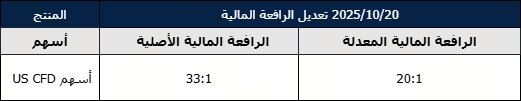 1. سيتم تعديل الرافعة المالية لجميع منتجات الأسهم الأمريكية إلى 20:1.