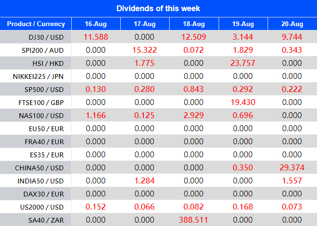 Warmly reminds you that the component stocks in the stock index spot generate dividends. When dividends are distributed, VT Markets will make dividends and deductions for the clients who hold the trading products after the close of the day before the ex-dividend date.