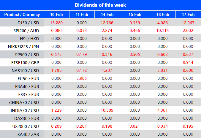 Warmly reminds you that the component stocks in the stock index spot generate dividends. When dividends are distributed, VT Markets will make dividends and deductions for the clients who hold the trading products after the close of the day before the ex-dividend date.