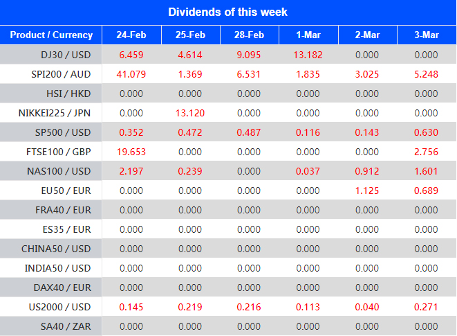 Warmly reminds you that the component stocks in the stock index spot generate dividends. When dividends are distributed, VT Markets will make dividends and deductions for the clients who hold the trading products after the close of the day before the ex-dividend date.