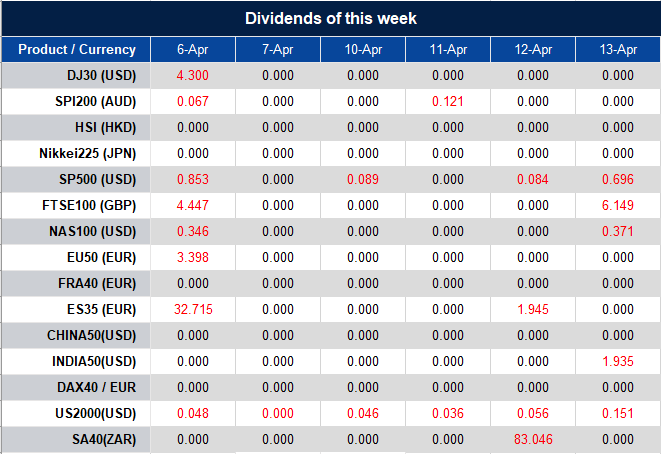 Please note that the dividends of the following products will be adjusted accordingly. Index dividends will be executed separately through a balance statement directly to your trading account, and the comment will be in the following format “Div & Product Name & Net Volume”.
