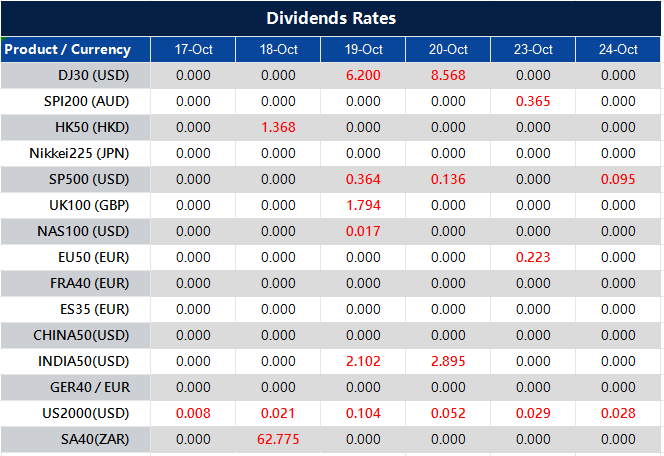 Please note that the dividends of the following products will be adjusted accordingly. Index dividends will be executed separately through a balance statement directly to your trading account, and the comment will be in the following format “Div & Product Name & Net Volume ”.