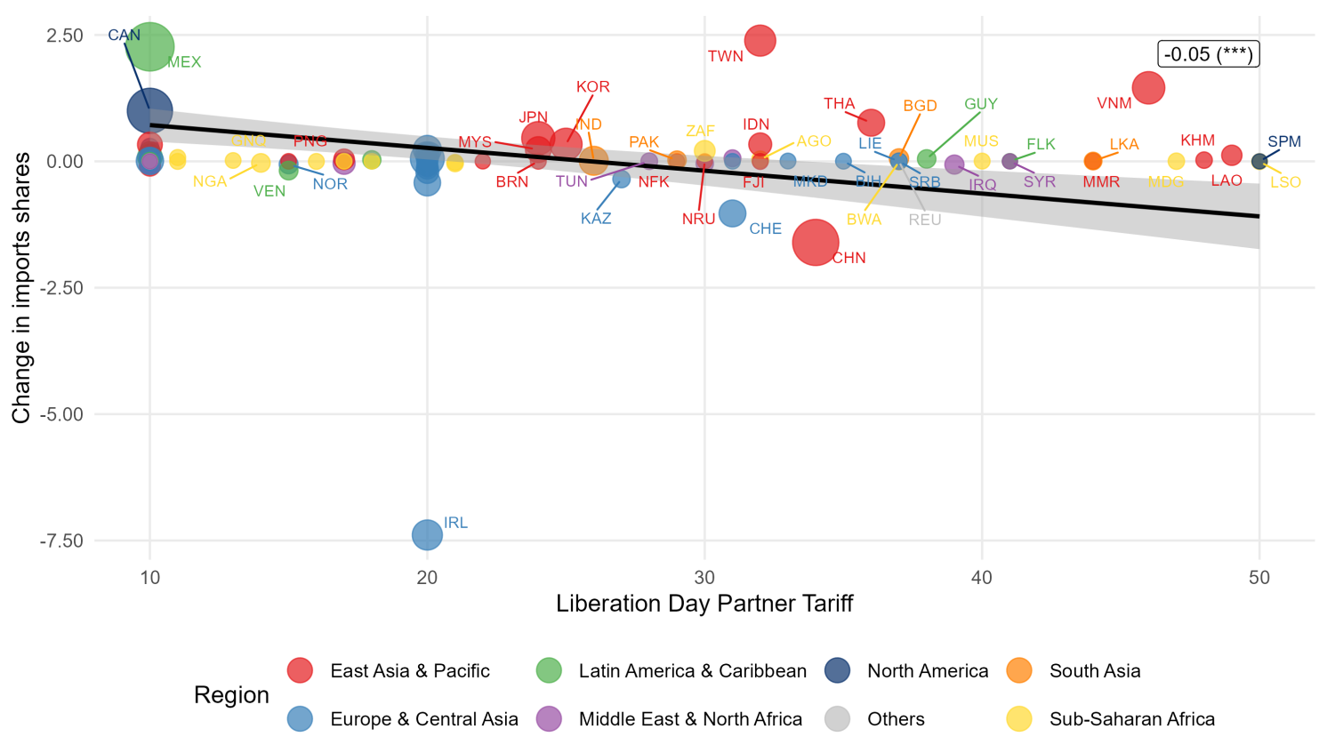 This shift has been accelerated by the Liberation Day tariffs introduced in 2025, which have significantly disrupted traditional supply chains. However, the diversification of trade partners remains largely limited to the top 20 US trade partners, reflecting a concentration of reallocated imports within established markets.