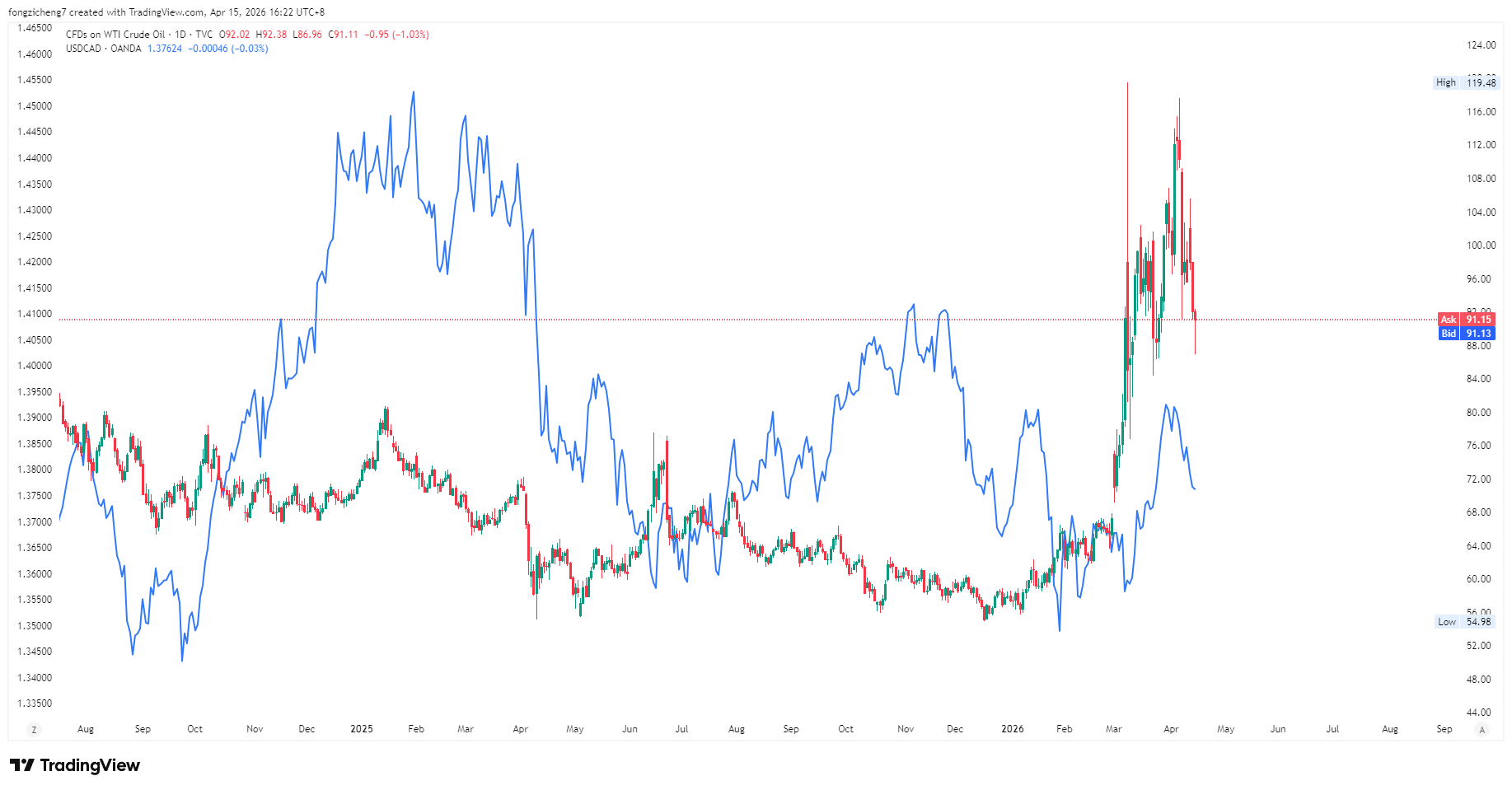 یکی از روشنترین رابطهها در USD/CAD است، چون کانادا صادرکننده بزرگ نفت است. بالا رفتن قیمت نفت معمولاً دلار کانادا را قویتر میکند. اگر همزمان تورم به دلار آمریکا فشار بیاورد، بالا رفتن نفت اغلب باعث پایین آمدن نرخ USD/CAD میشود.