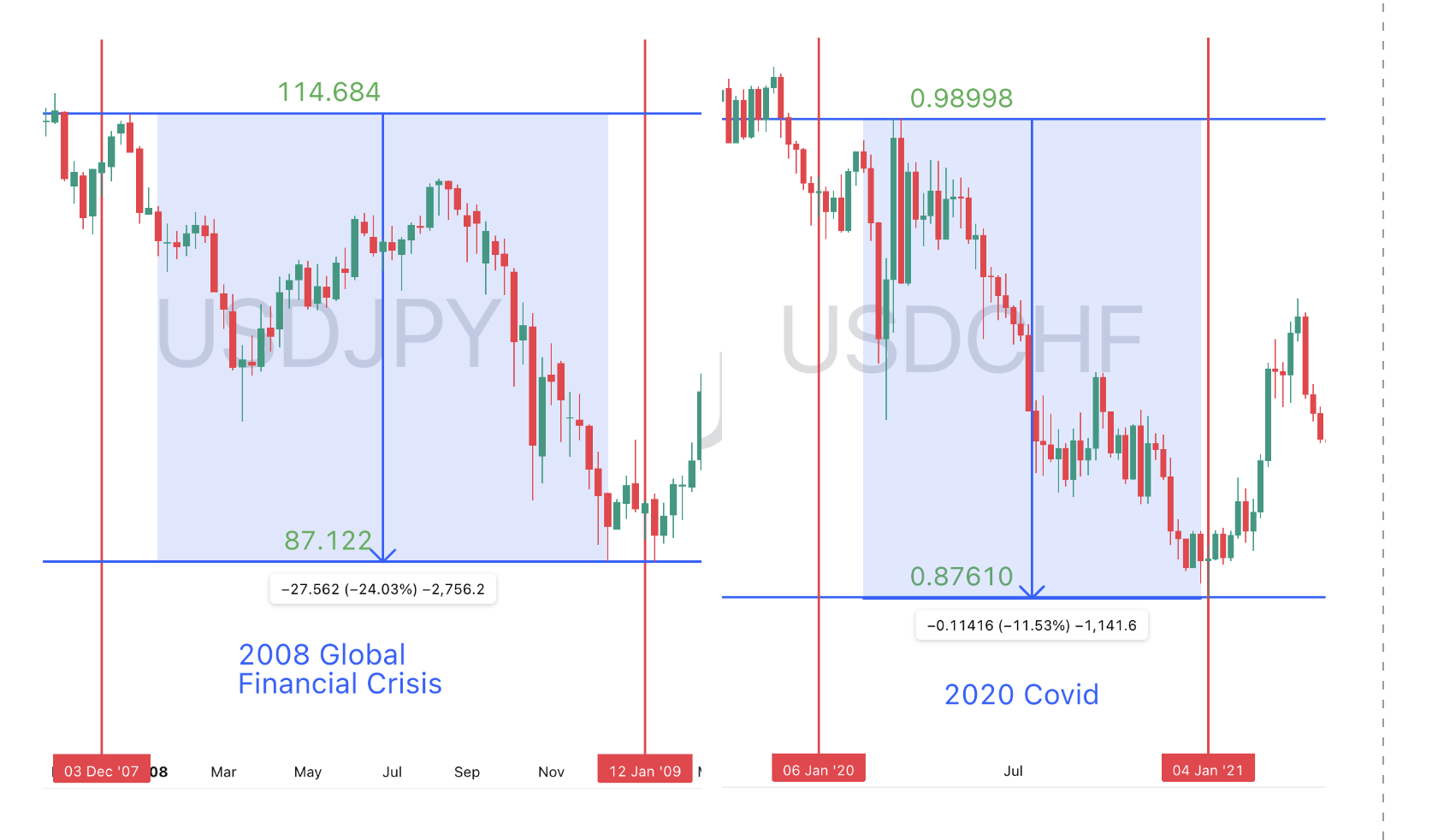 CHF و JPY به بحران‌های مختلف چگونه واکنش نشان می‌دهند؟