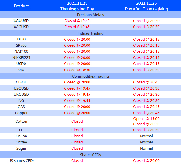 Please note that adjustment on following products due to Thanksgiving Day,and Day after Thanksgiving.