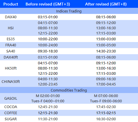 Dear Client, The trading hours of some MT4/MT5 products will change due to the upcoming Daylight-Saving Time change in US. …
