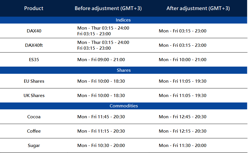 Dear Client, The trading hours of some MT4/MT5 products will change due to the upcoming Daylight-Saving Time change in US. …