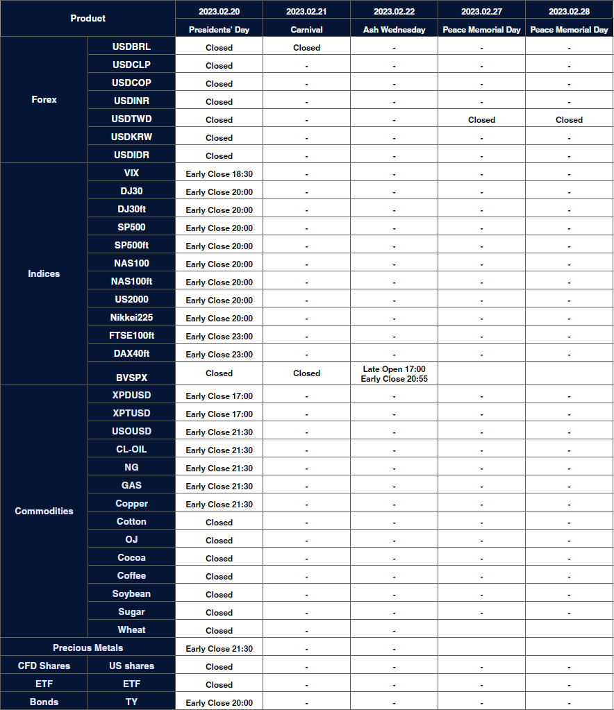 Please note that the following instruments’ trading hours will be affected by the upcoming holidays.