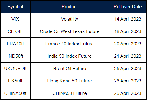• To avoid CFD rollovers, clients can choose to close any open CFD positions prior to the expiration date.