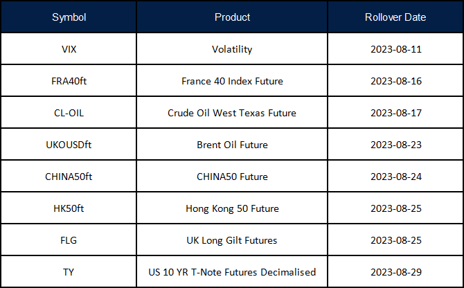 August Futures Rollover Announcement