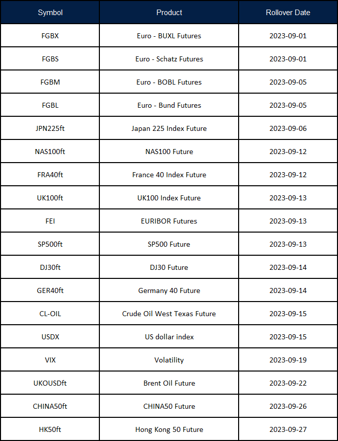 • To avoid CFD rollovers, clients can choose to close any open CFD positions prior to the expiration date.
