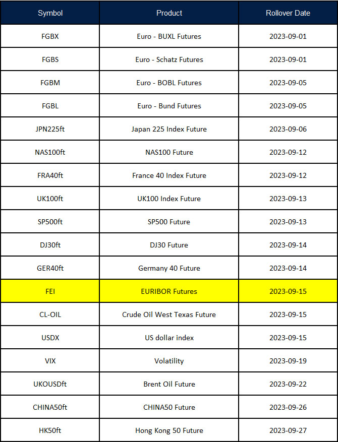 • To avoid CFD rollovers, clients can choose to close any open CFD positions prior to the expiration date.