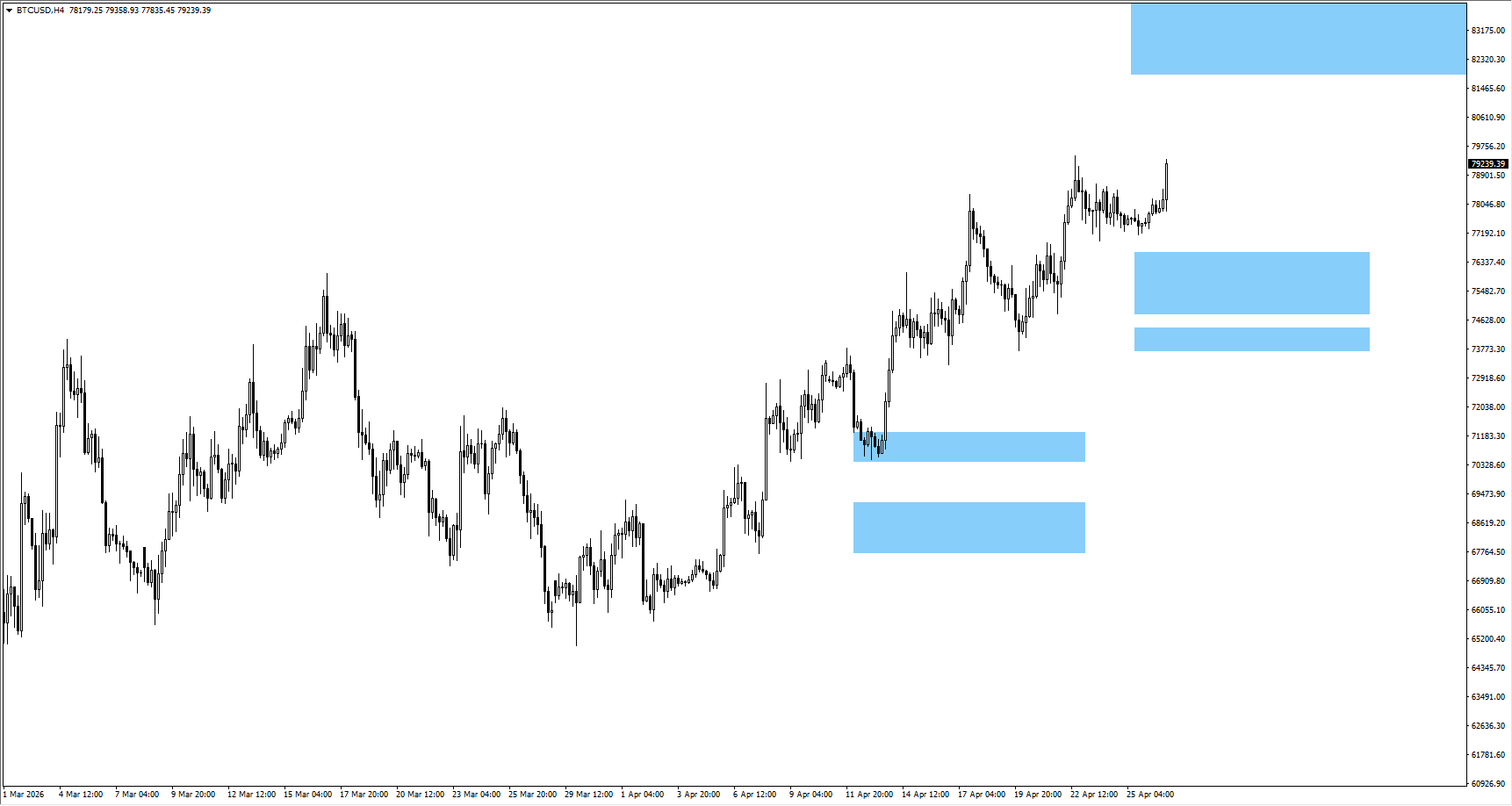 - ماندنِ قوی بالای 80000 یعنی 82850 محدوده بعدی برای ادامه حرکت BTCUSD است.